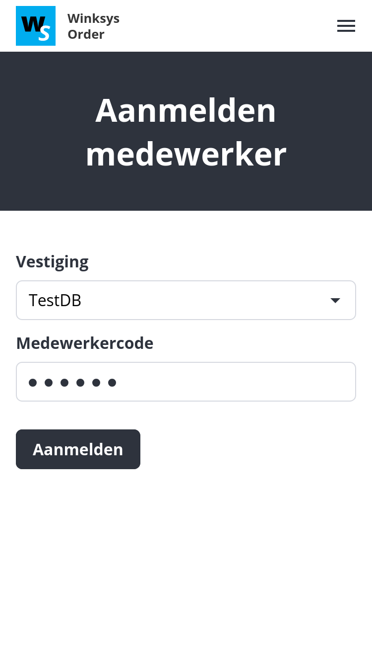 Vul je database (indien van toepassing) en je medewerkercode in -